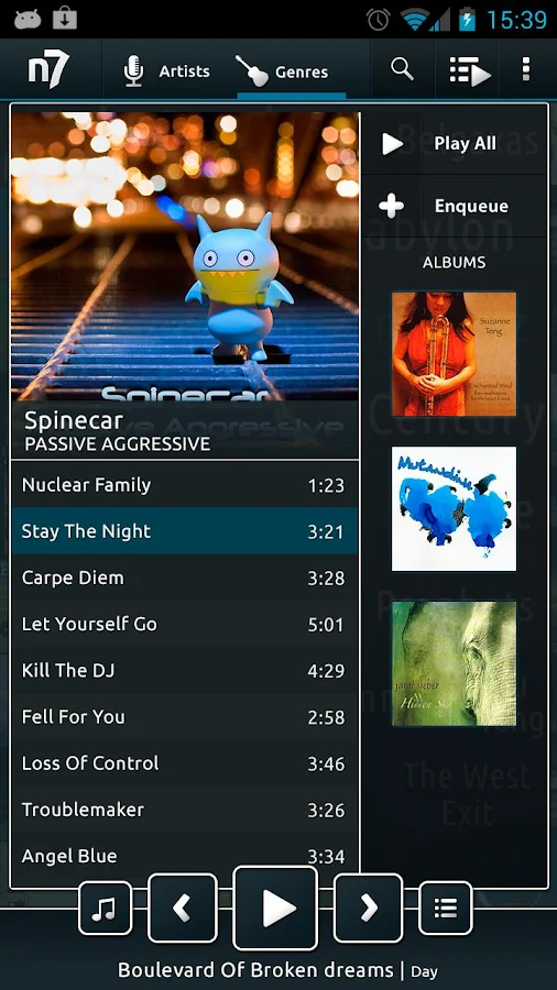 La aplicación n7player proporciona una interfaz gráfica totalmente innovadora que presenta álbumes de música en una superficie en tres dimensiones. Además, proporciona un completo soporte multi-touch que permite al usuario ir pasando por entre las imágenes de artistas y álbumes con un simple gesto. Gracias al uso de tecnologías innovadoras, navegar por la música nunca ha sido tan fácil!