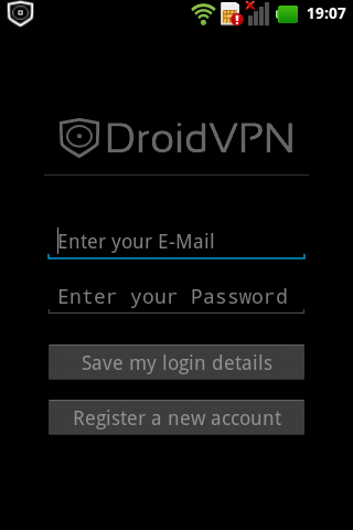 6. Una vez hecho esto, abrimos la aplicación DroidVPN. Una vez en ella, te pedirá tu correo y contraseña. Ponen los datos con los que se registraron en su página web.